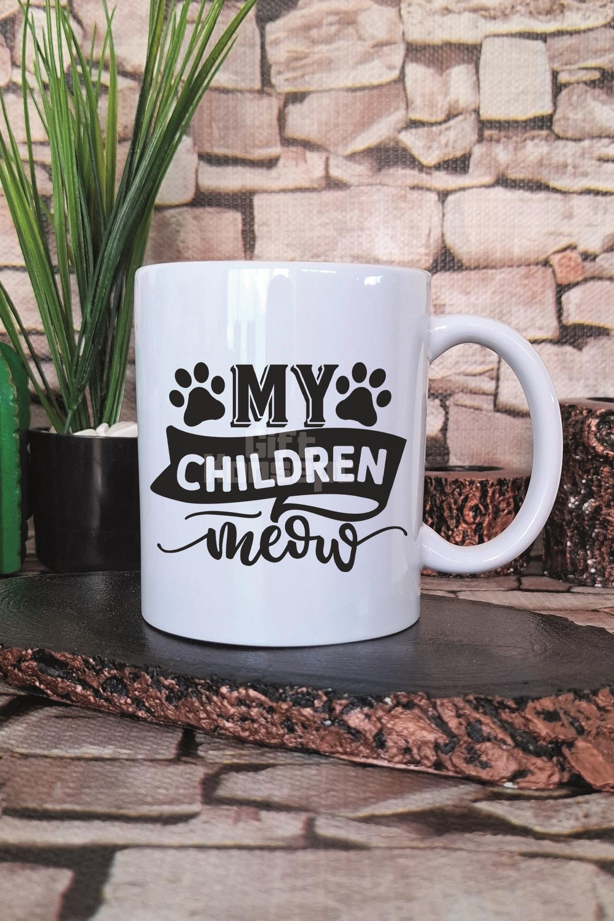 My Children Meow Yazılı Komik Kedi Sahibi Hediyelik Baskılı Çay Kahve Sunum Kupa Bardak