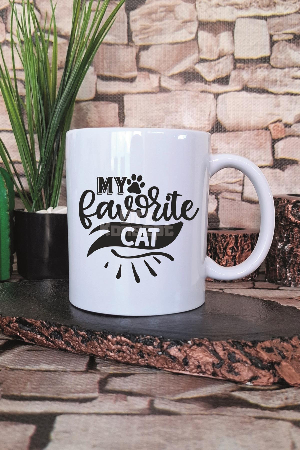 My Favorite Cat Baskılı Kedisever En Sevdiğim Kedi Hediyelik Baskılı Çay Kahve Sunum Kupa Bardak