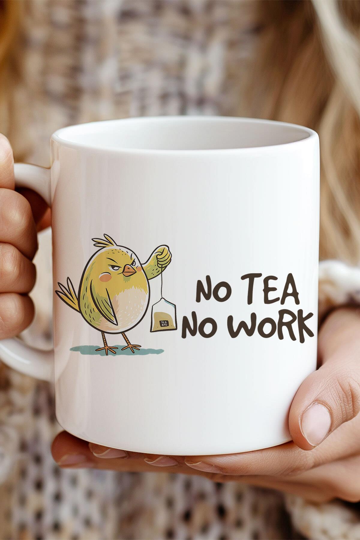 No Tea No Work Baskılı Eğlenceli Komik Hediyelik Kupa Bardak