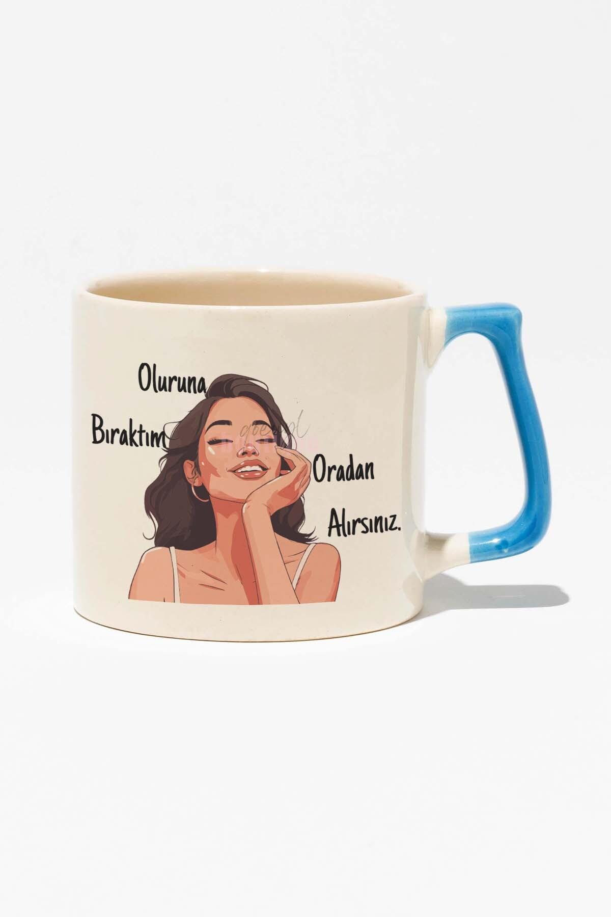 Oluruna Bıraktım Oradan Alırsınız Komik Hediyelik Baskılı Mavi Kulplu Modern Seramik Kupa