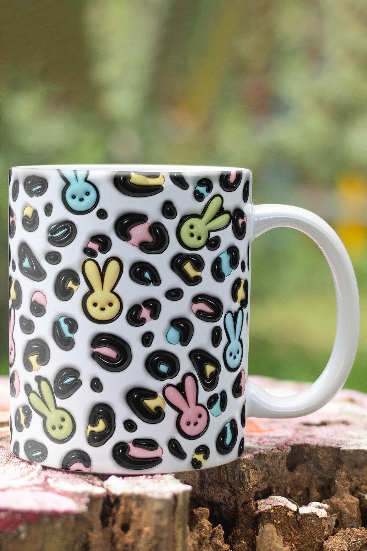 Pastel Leopar Desenleri 3D Tasarım Görünümlü Baskılı Kupa Bardak Mug