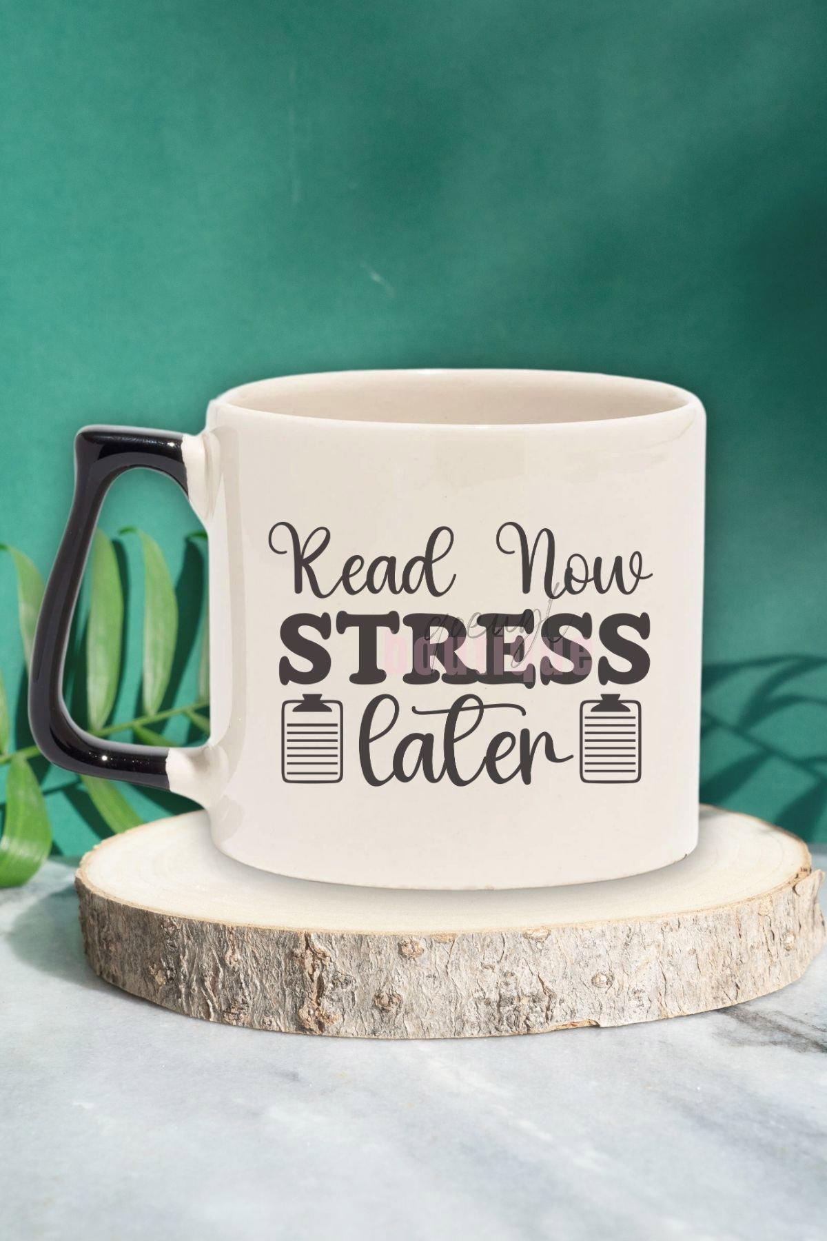 Read Now Stress Later Yazılı Kitap Okuma Motivasyonu Hediyelik Siyah Kulplu Kupa Bardak