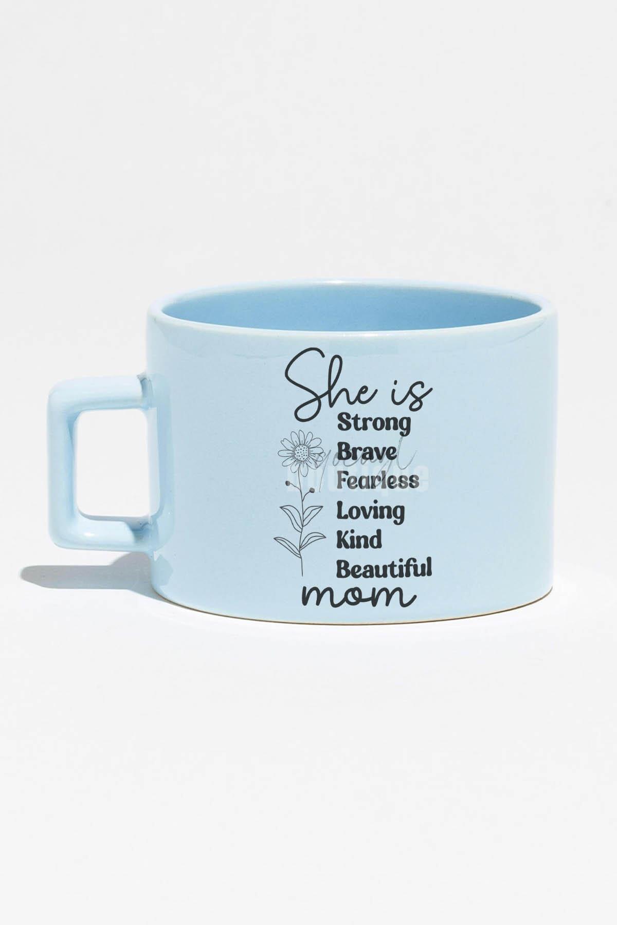 She Is Mom Baskılı Anneler Günü Hediyelik Mavi Dikdörtgen Kulplu Fincan Kupa Bardak