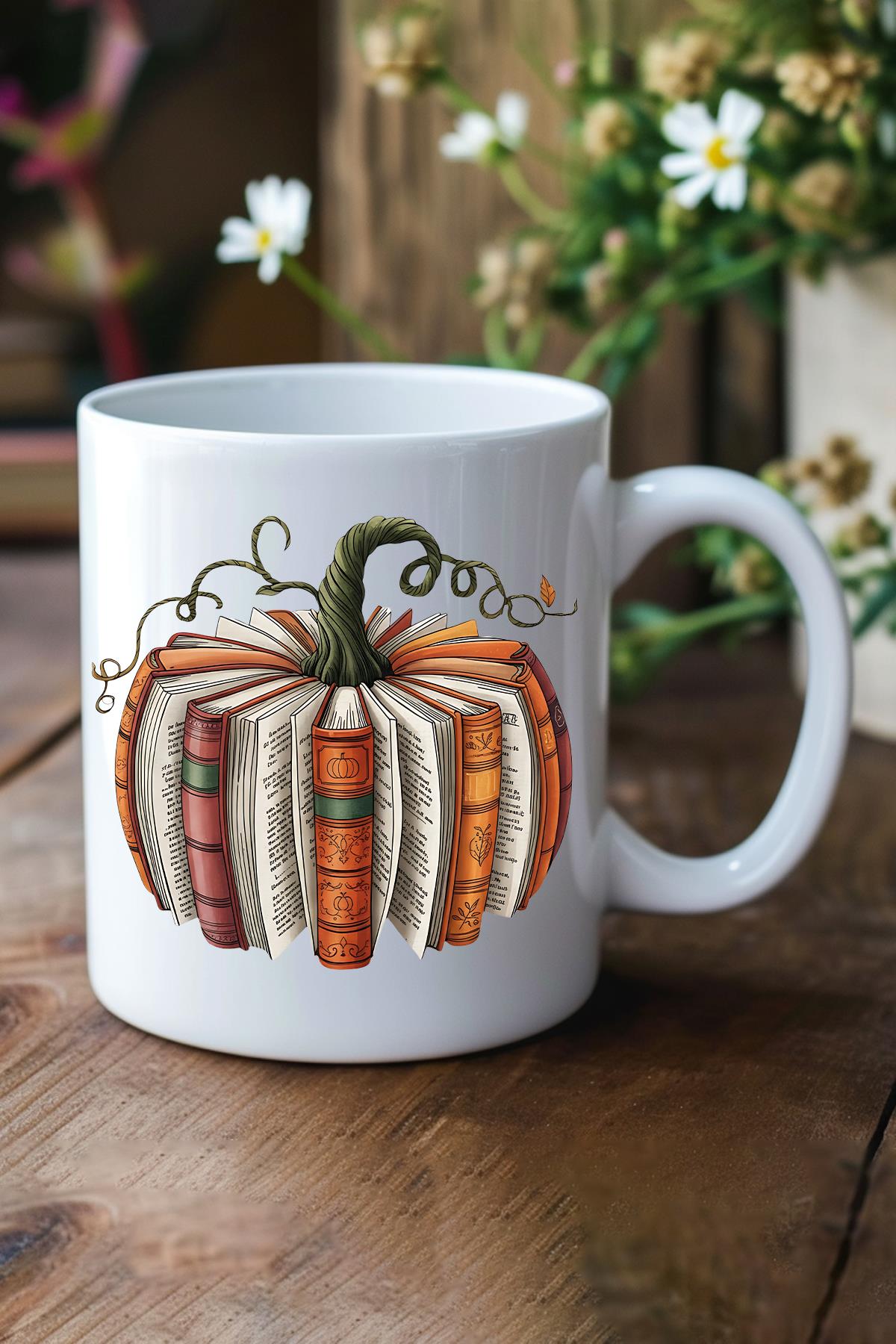 Sonbahar Temalı Balkabağı Kitaplar Baskılı Hediyelik Kupa Bardak