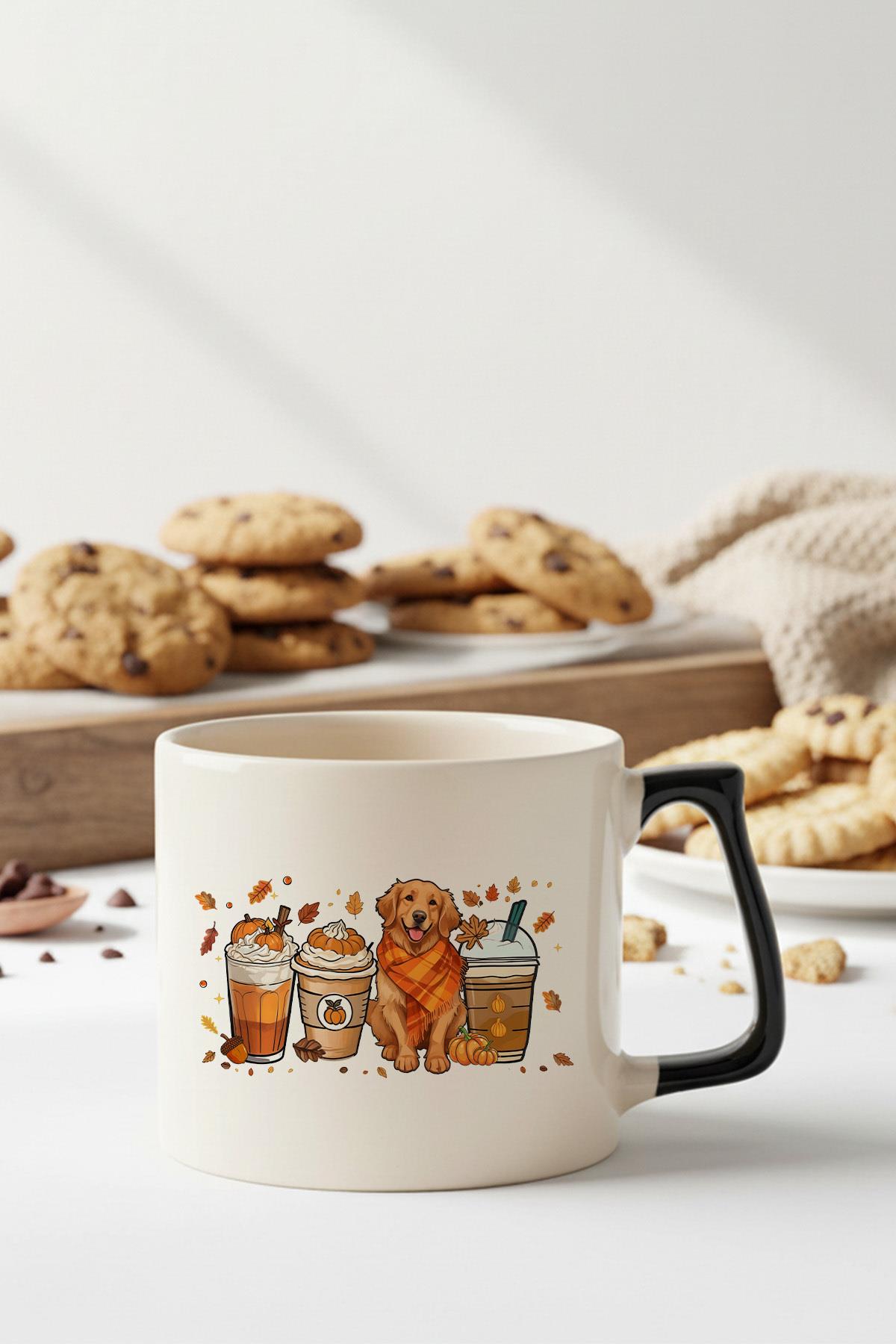Sonbahar Temalı Kahveler No:4 Baskılı Siyah D Kulplu Kupa Bardak