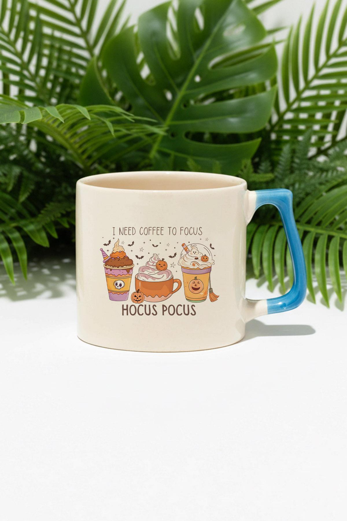 Sonbahar Temalı Kahveler No:9 Baskılı Mavi D Kulplu Kupa Bardak