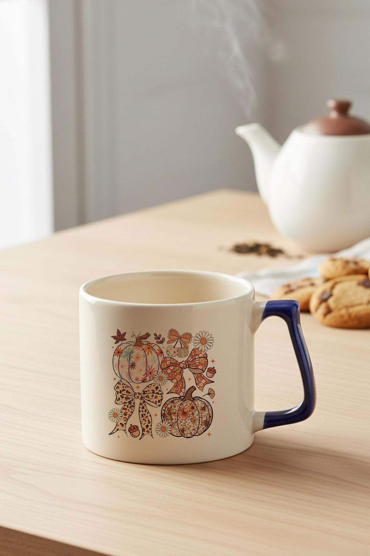 Sonbahar Teması Pumpkin Couqette No:2 Baskılı Lacivert D Kulplu Kupa Bardak