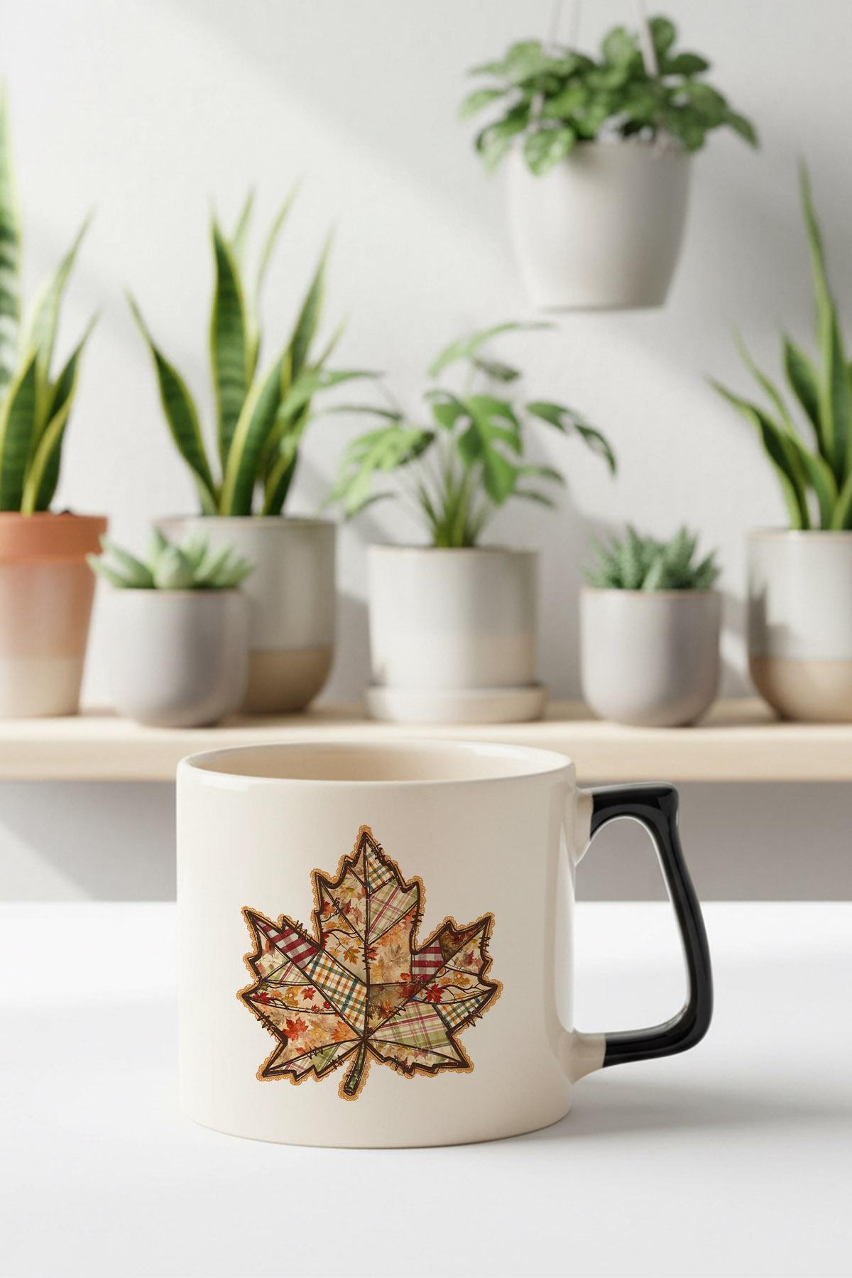 Sonbahar Yaprak Baskılı Siyah D Kulplu Kupa Bardak