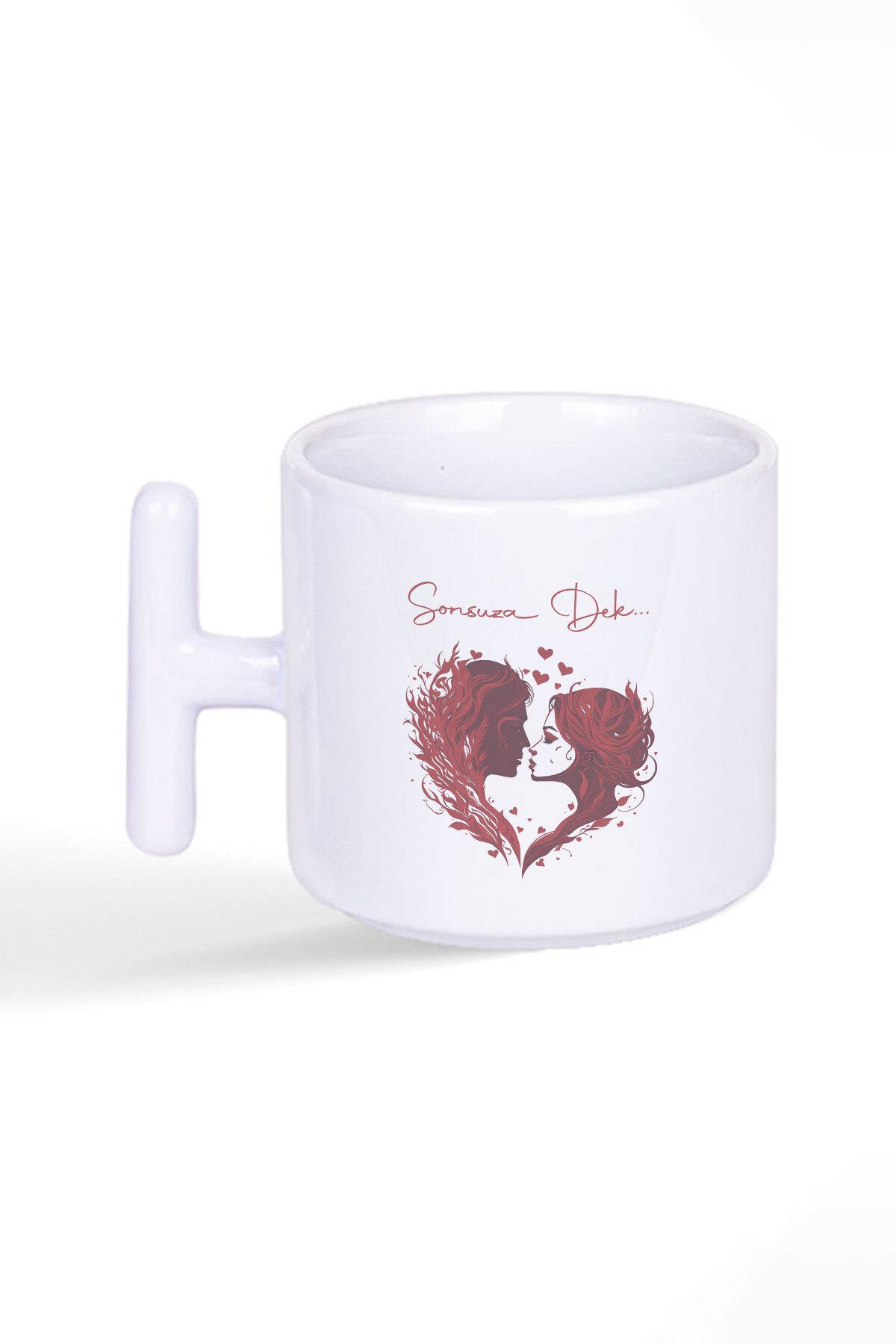 Sonsuza Dek Sevgili Özel Hediye Sevgililer Günü Baskılı Latte Fincanı T Kulplu Kupa Bardak