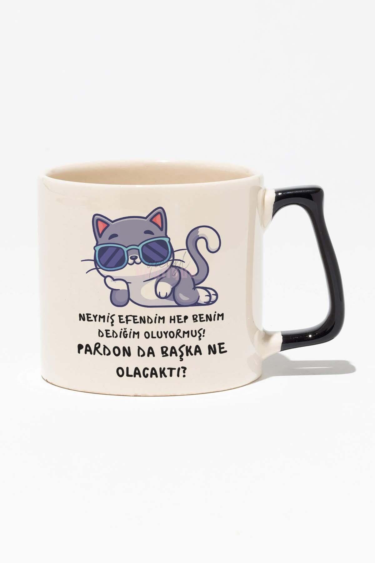 Tabi ki Benim Dediğim Olacak Eğlenceli Hediyelik Beyaz Baskılı Siyah Kulplu Modern Seramik Kupa