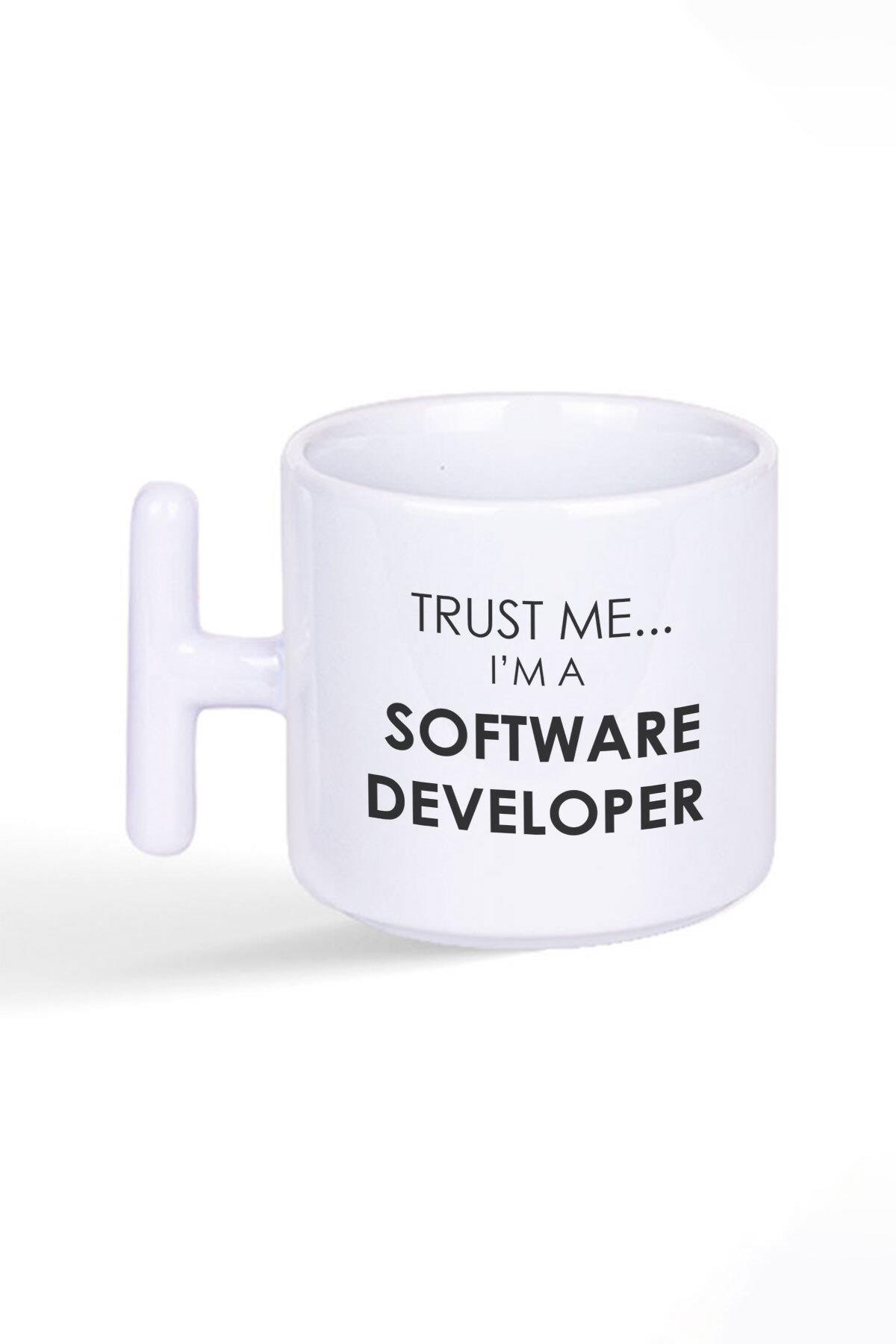 Trust Me I Am A Software Developer Yazılımcı Baskılı Latte Fincanı T Kulplu Kupa Bardak