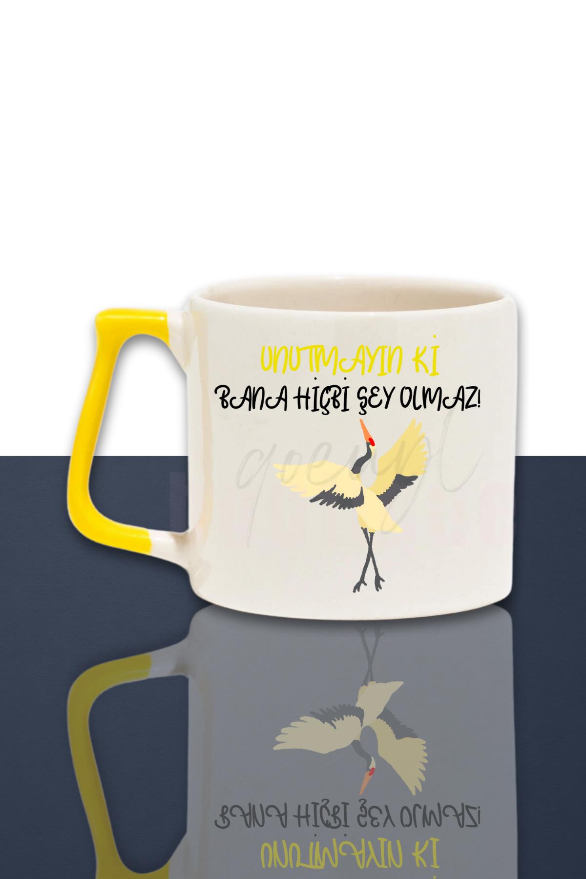 Unutmayın ki Bana Hiçbi Şey Olmaz Leylek Baskılı Komik Hediyelik Renkli Kulplu Kupa Bardak