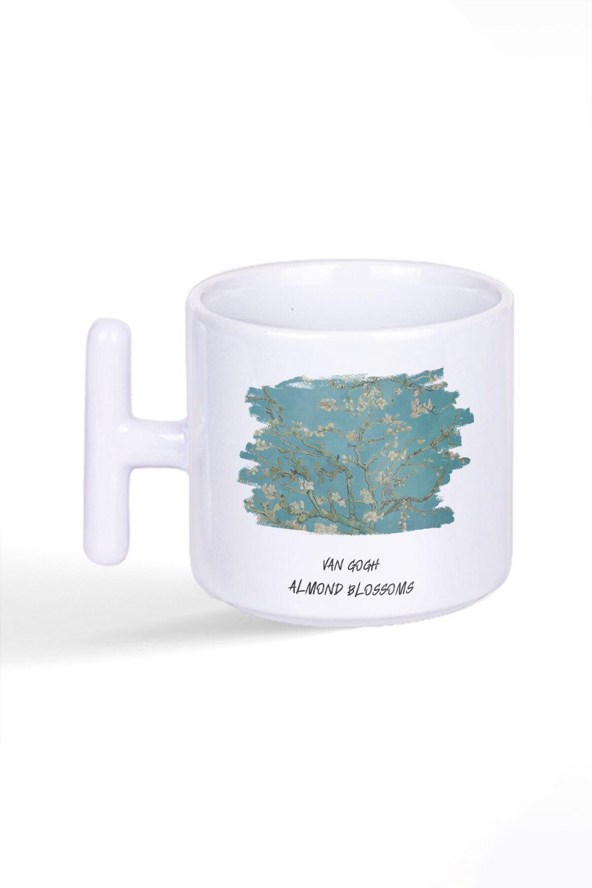 Van Gogh Temalı Almond Blossoms Baskılı Latte Fincanı T Kulplu Kupa Bardak