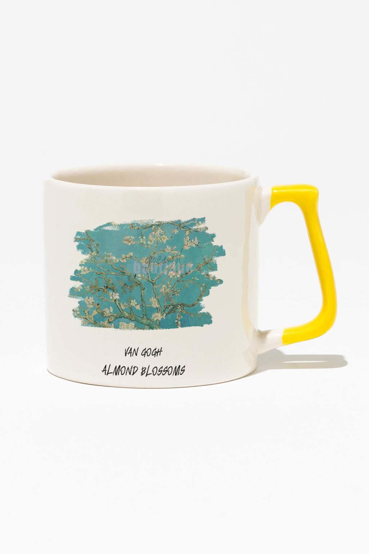 Van Gogh Temalı Almond Blossoms Baskılı Sarı Kulplu Modern Seramik Kupa