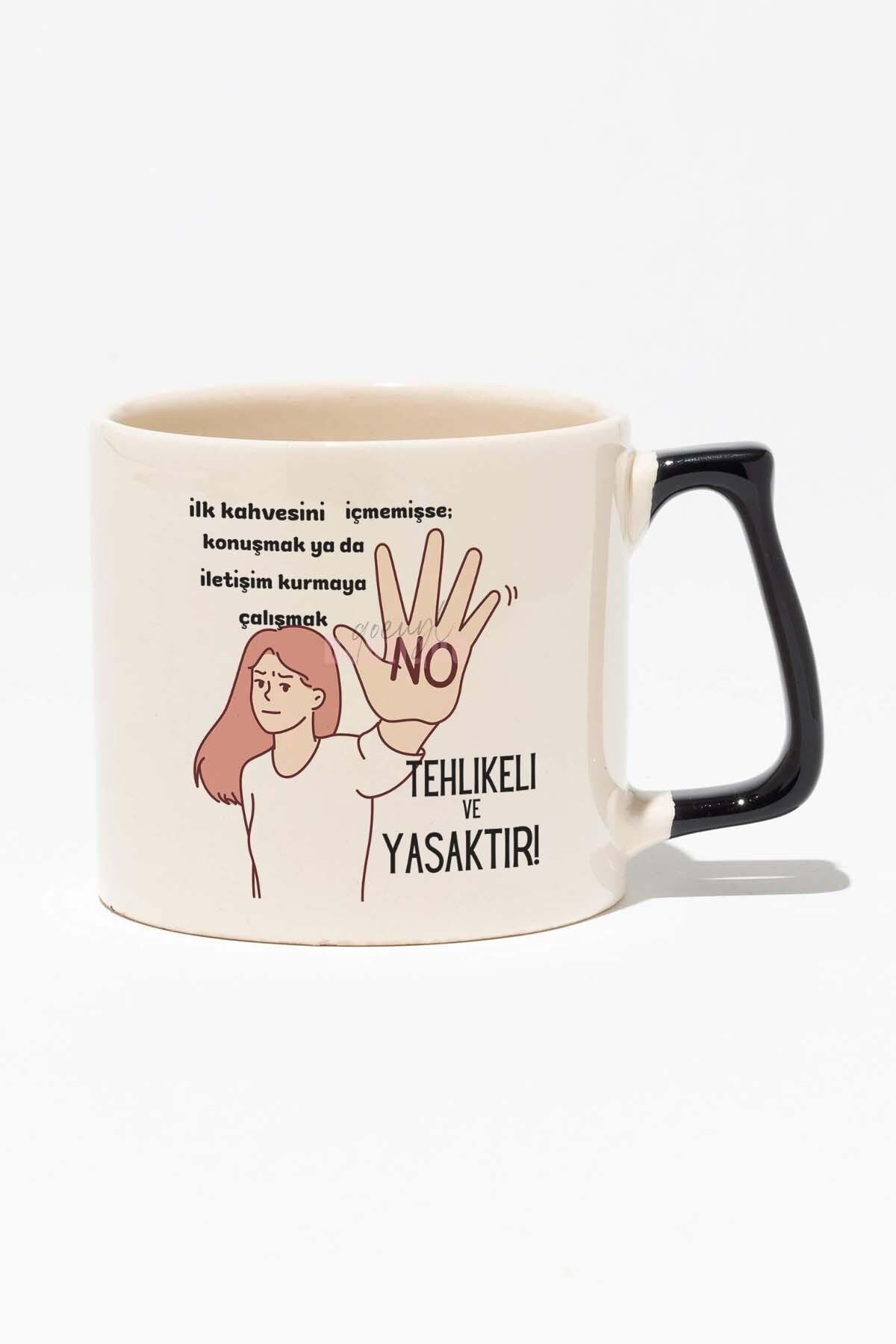 Yaklaşmak Tehlikeli ve Yasaktır Eğlenceli Komik Hediyelik Baskılı Siyah Kulplu Modern Seramik Kupa