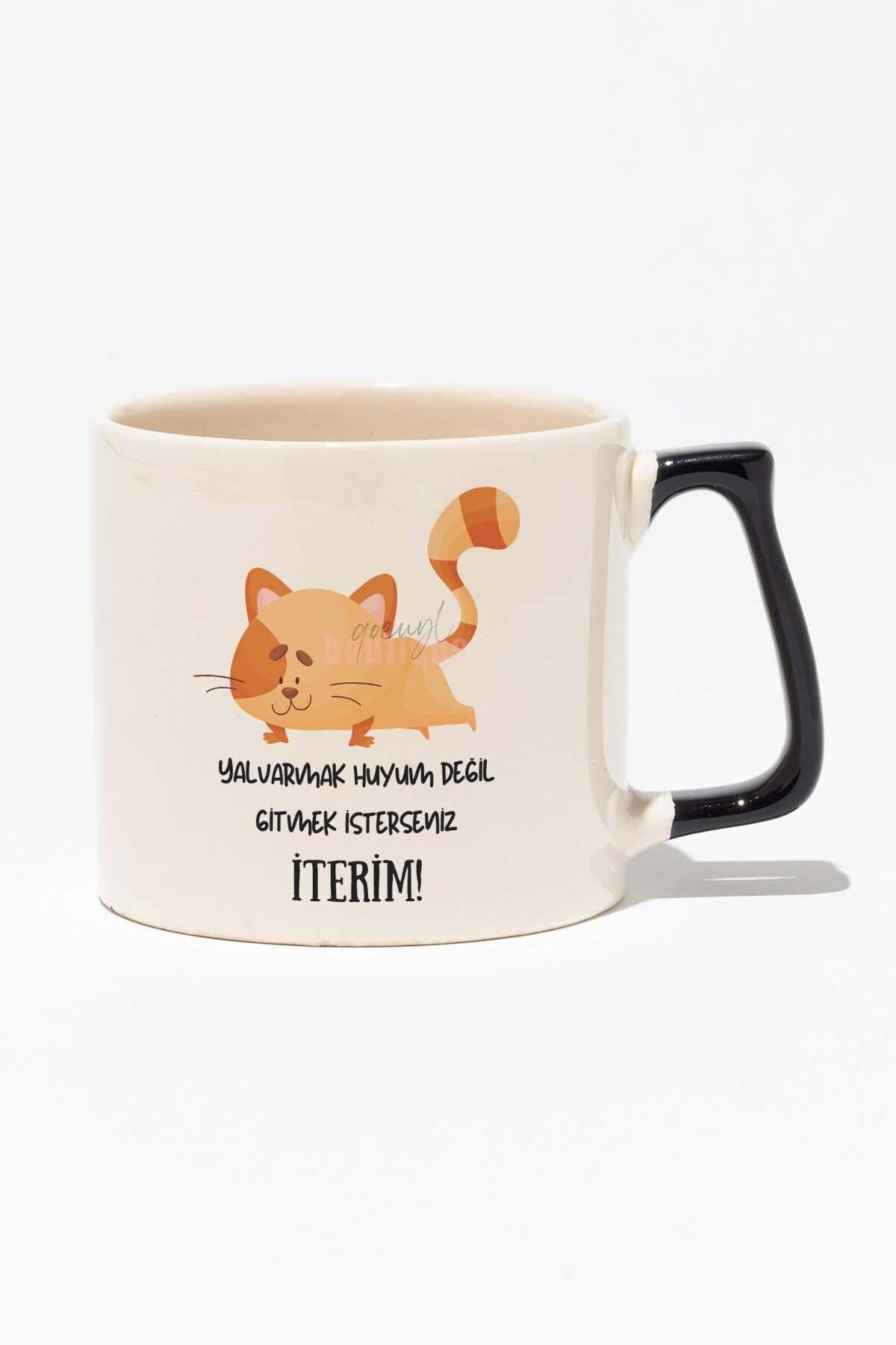 Yalvarmak Huyum Değil Eğlenceli Hediyelik Beyaz Baskılı Siyah Kulplu Modern Seramik Kupa