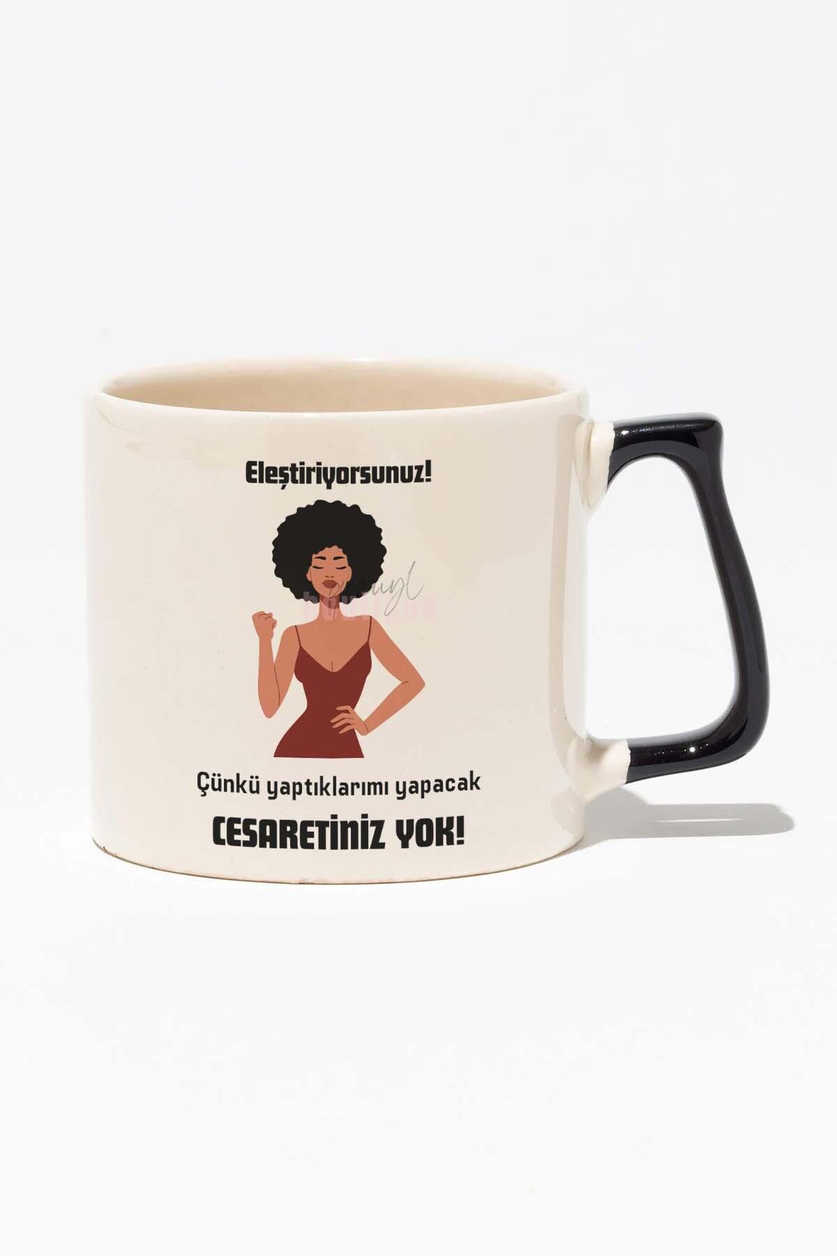 Yaptıklarımı Yapacak Cesaretiniz Yok Hediyelik Baskılı Siyah Kulplu Modern Seramik Kupa