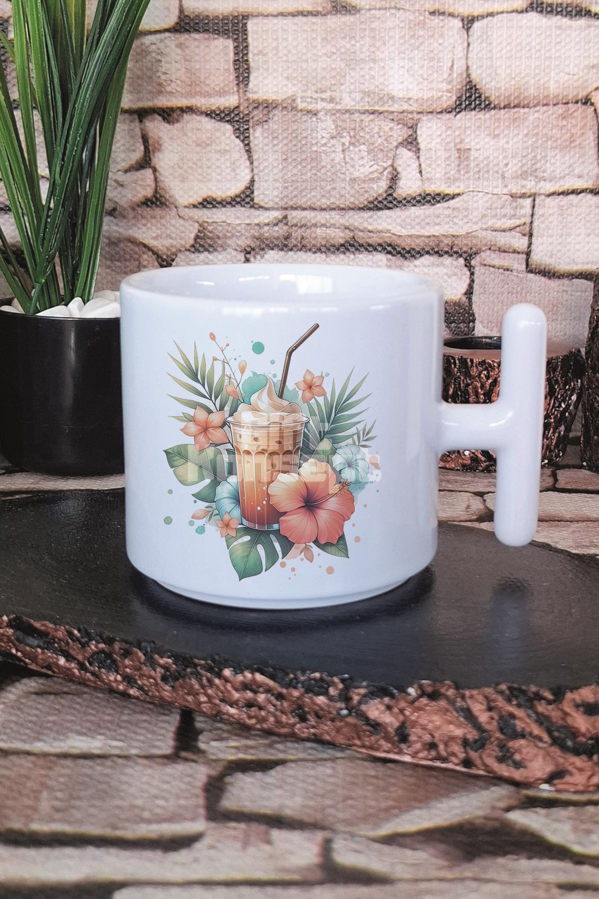 Yaz Kokteyli Baskılı T Kulplu Latte Fincanı Kupa Bardak